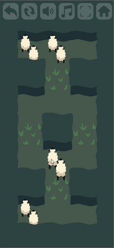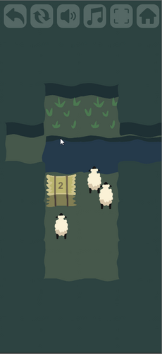 I like this chill, well thought out and nicely presented puzzle game! I noticed an interface bug though. If you fall in the water, pressing R or hitting the on screen restart button resets the level but leaves the level failed dialogue box open until you either select an option in it or move the sheep so they hit an obstruction.